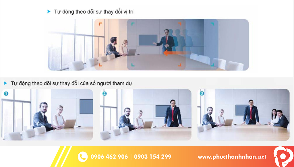 - Tính năng tự động nhận diện giọng nói và tập trung vào người thuyết trình.